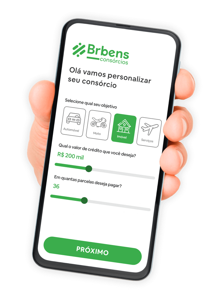 SIMULE AGORASonhos existem para serem realizados e com a Brbens Consórcios você pode. Transforme sua vida com segurança e tranquilidade sabendo que estamos sempre ao seu lado e atentos aos compromissos e regras impostas pelo Banco Central.
